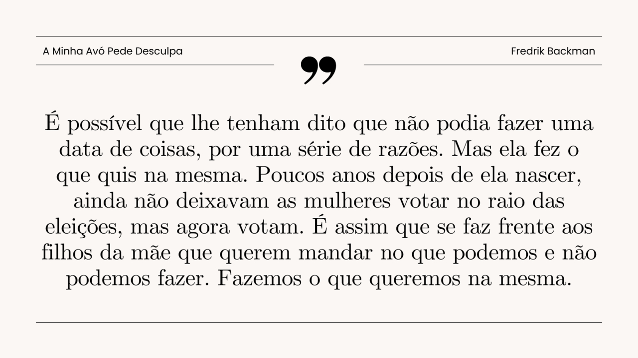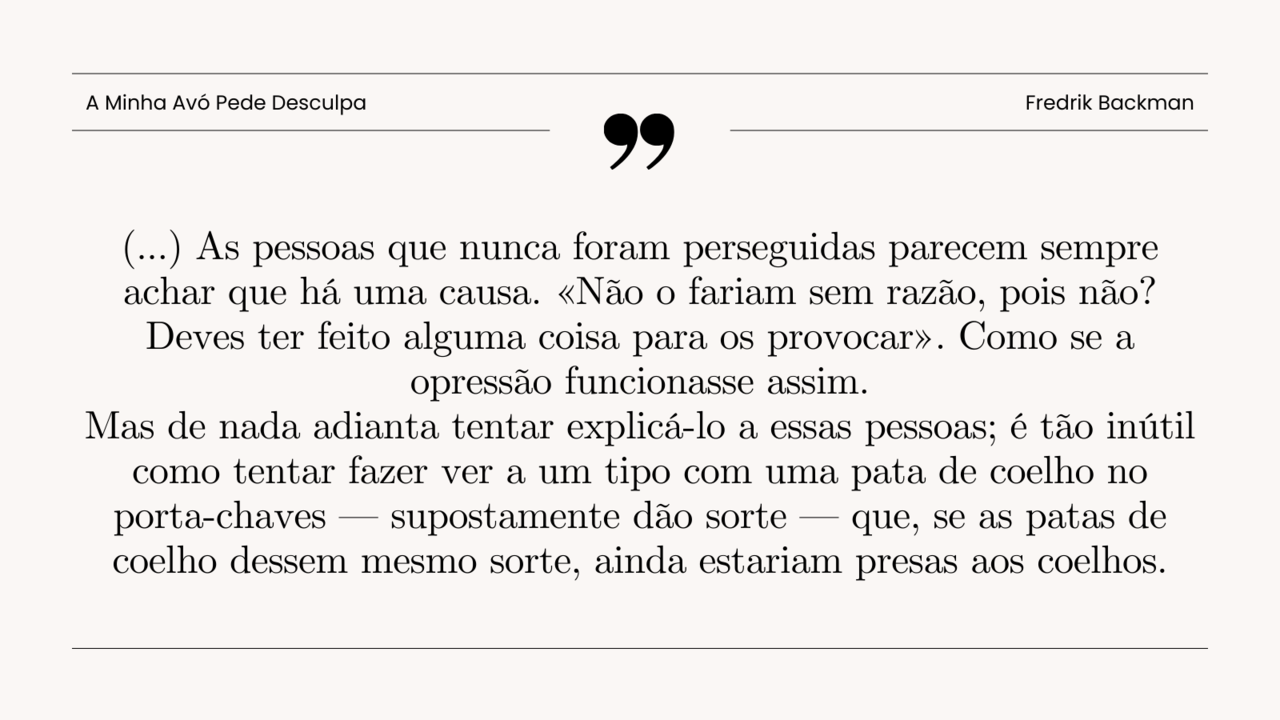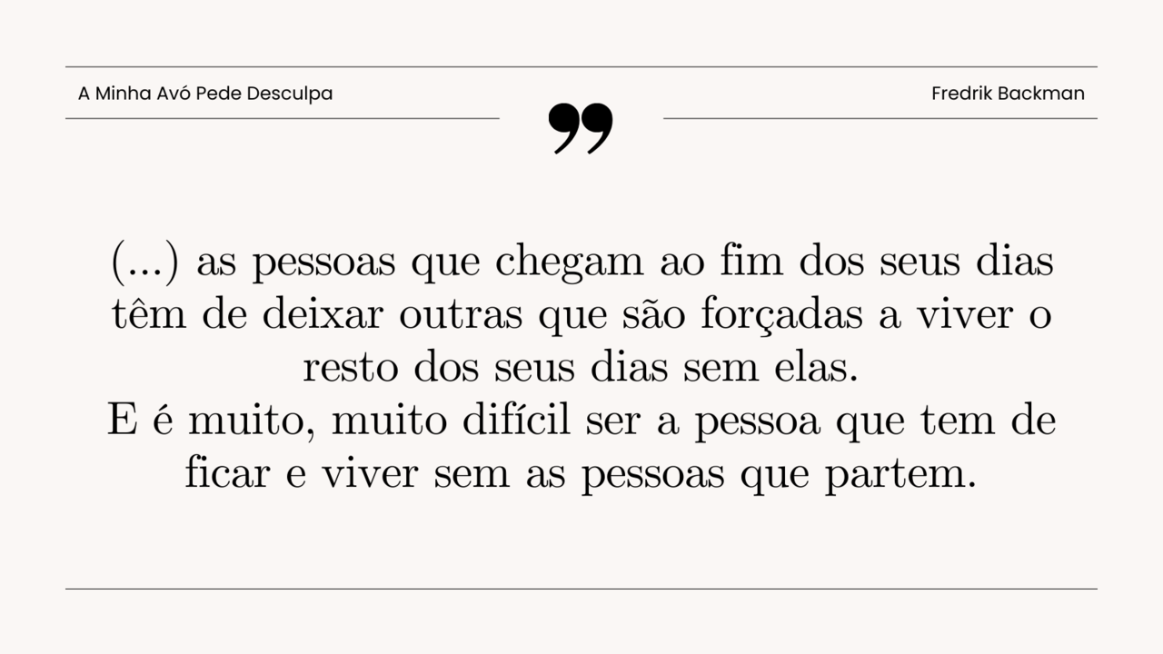 Acho que Fredrik Backman se está a tornar num dos meus escritores preferidos; e inconscientemente, é um dos poucos autores aos quais volto várias vezes sem perceber — e isto tem de querer dizer algo, não é? Além disso, descobri que uma das personagens vizinhas tem todo um outro livro dedicado a ela; que maravilha, mais um título para a minha lista para ler.